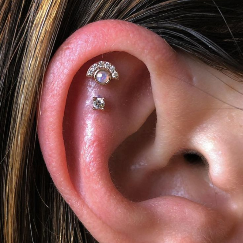 - Gemstone: (1) 2mm Australian Opal and (6) 1mm CZs