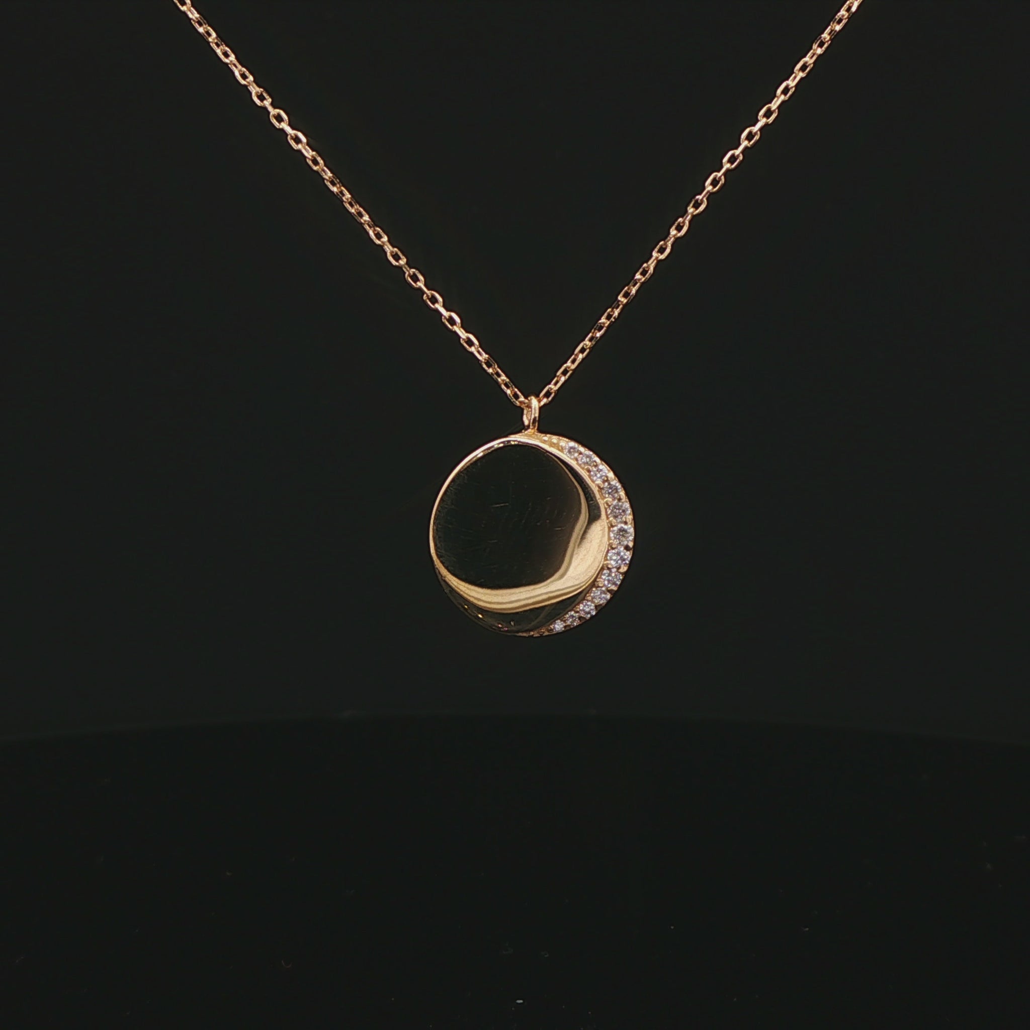 Inspired by the quiet beauty of the night sky, the Luna Necklace captures the moment of an eclipse—where the moon and stars align in perfect balance. A delicate crescent moon sits within a circular frame, symbolizing cycles, light in darkness, and celestial harmony.