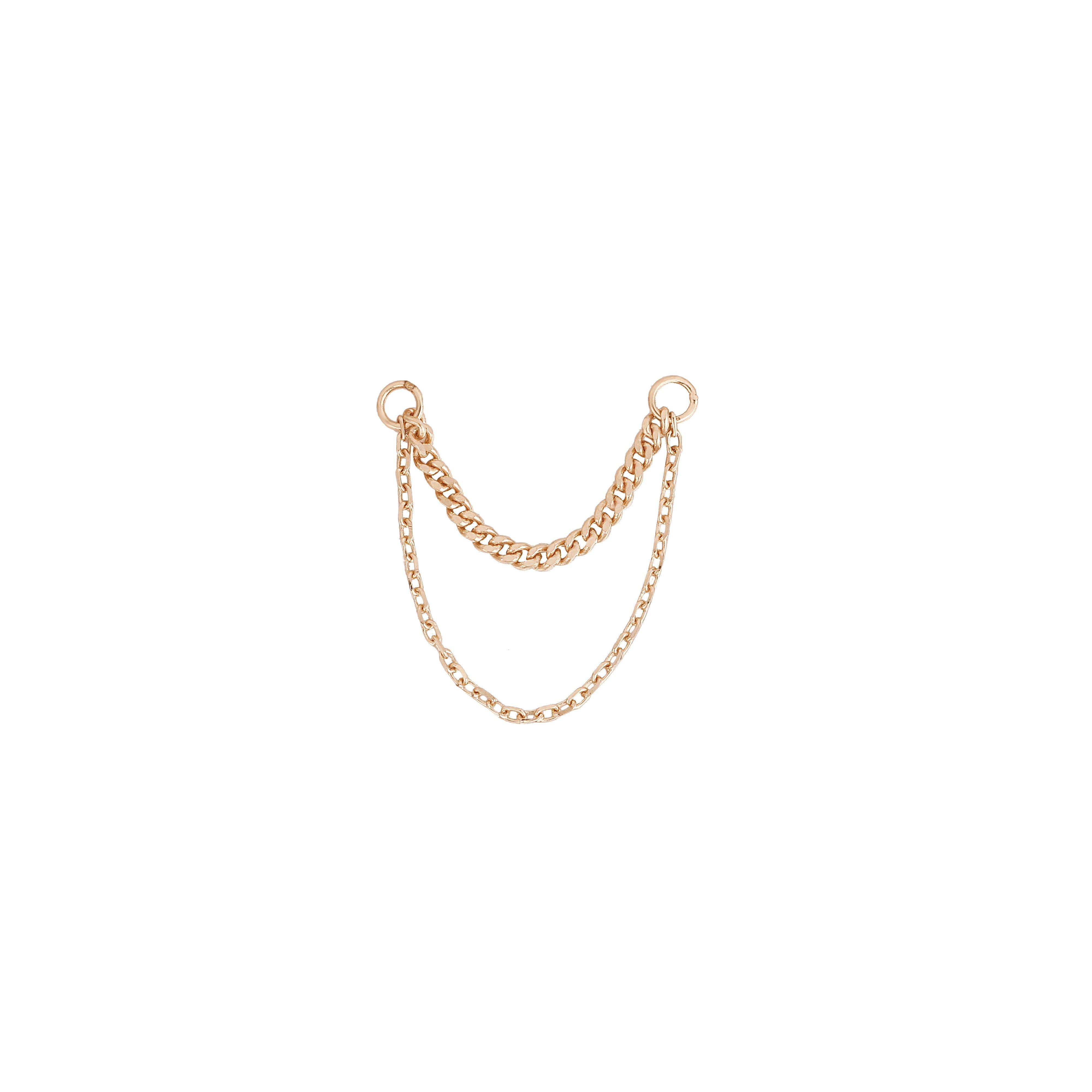 Level up with the Diamond Cut + Side Chain featuring two different style chains and lengths. This chain is sure to elevate any piercing with movement and flair. Crafted in Solid 14kt Gold, this design can be styled in a variety of different ear and body piercings!