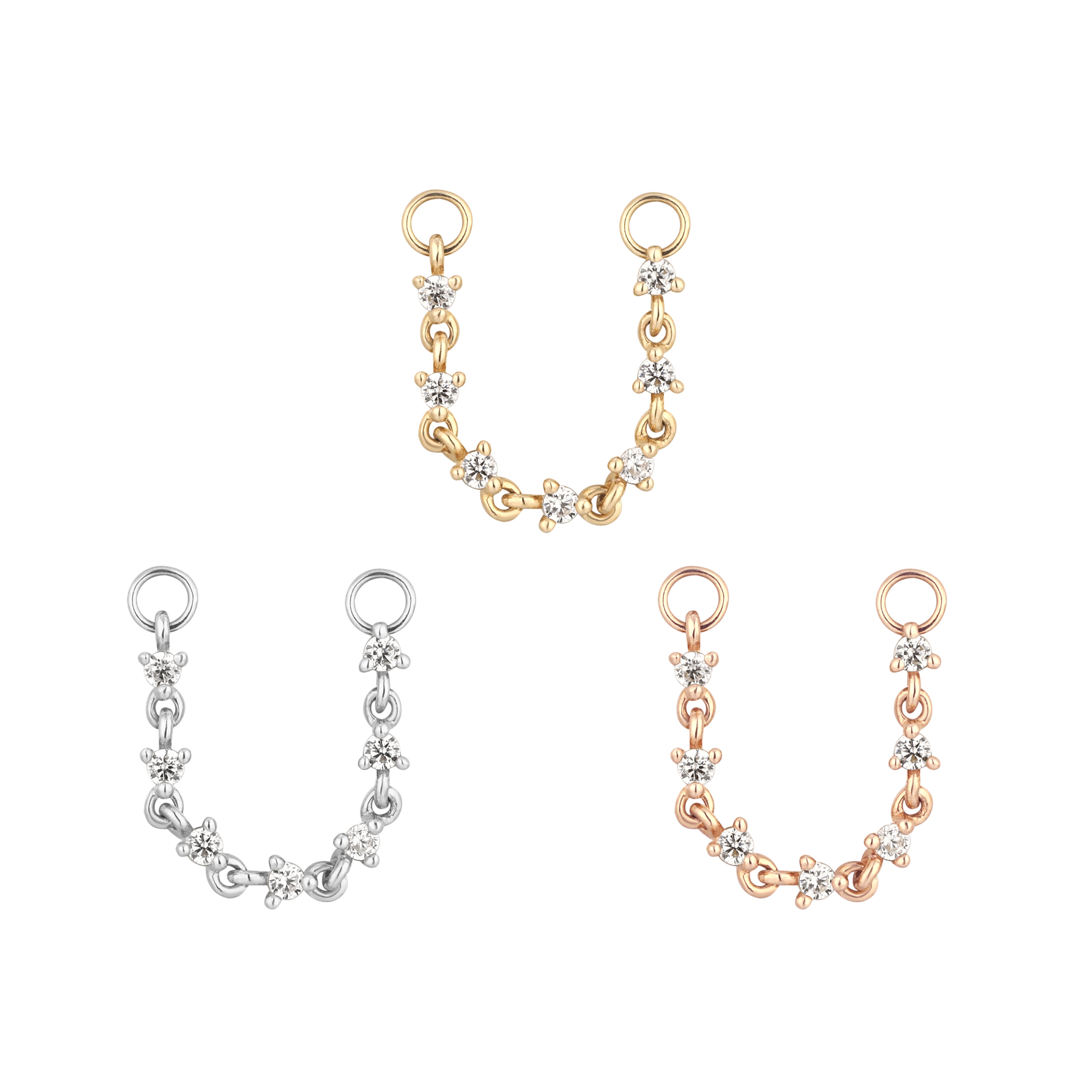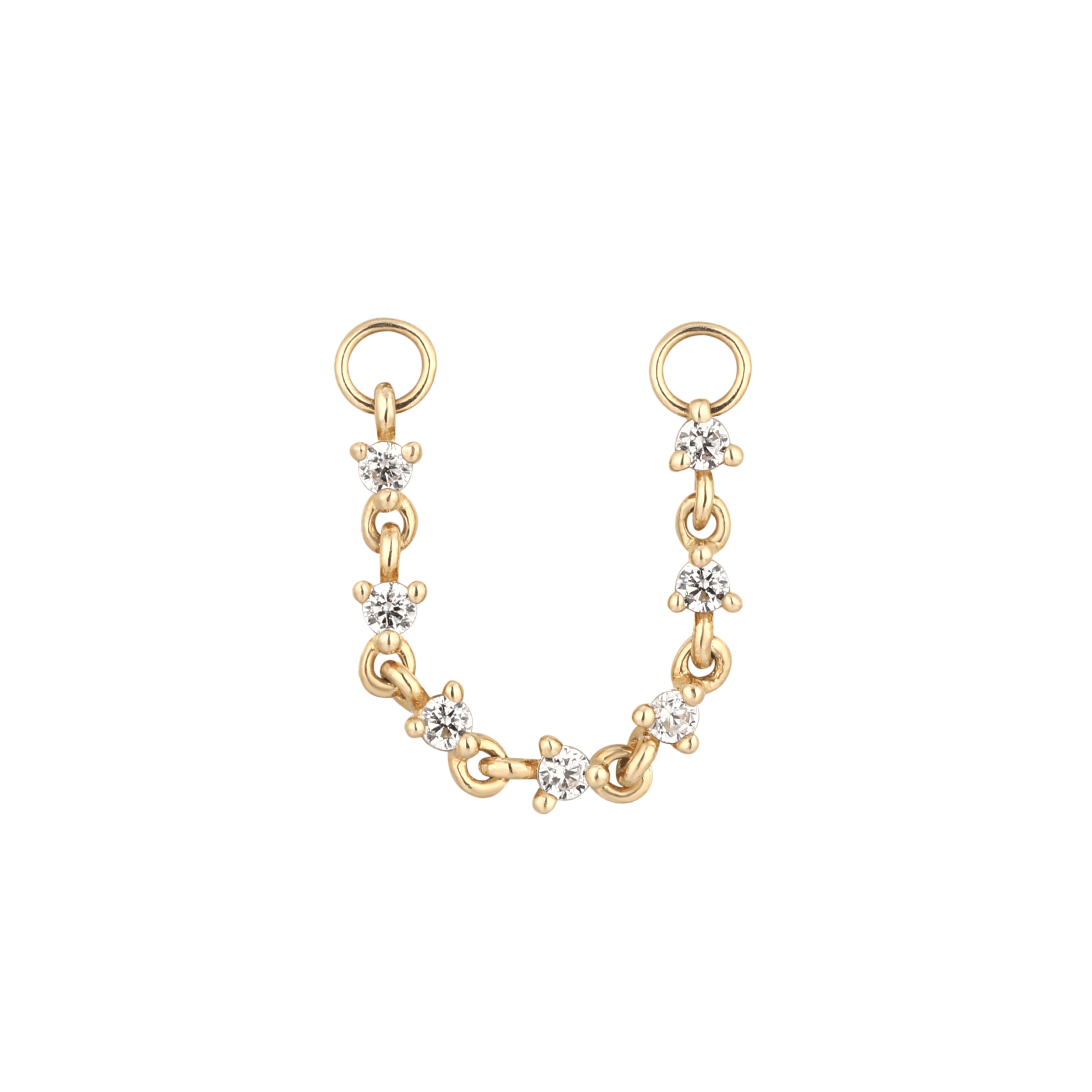 Transform your outfit into a showstopping masterpiece with this Languid Gold Chain! This exquisite piece features seven dazzling CZs set in solid 14k gold, making it perfect for adding a sparkle of luxury. The dangling chain makes a glamorous statement that'll leave you feeling like a million bucks.