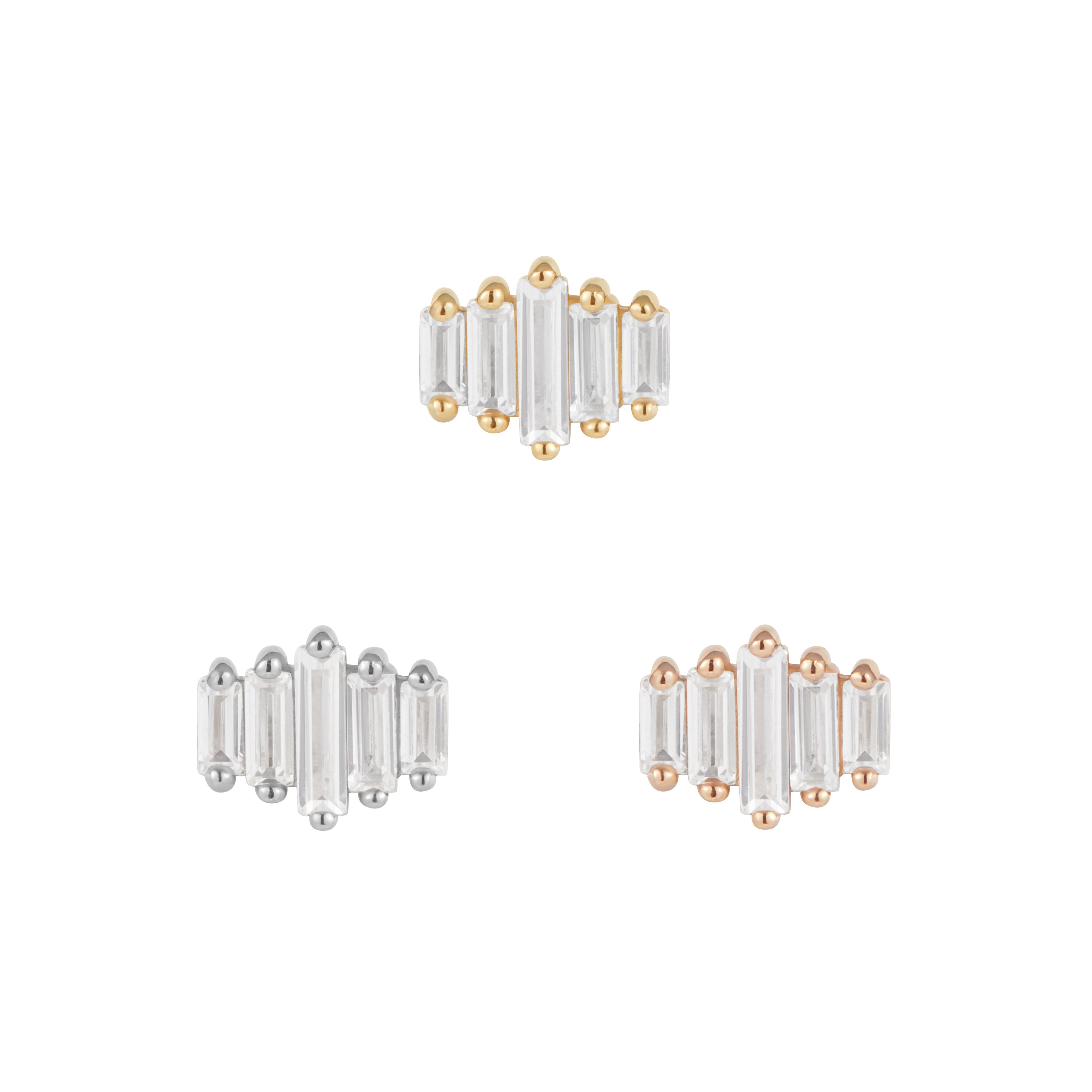'Tis the season to sparkle and shine — Evolution is the dazzling addition you didn't know you needed! This elegant piece exudes sophistication and style with its versatile design, allowing it to be styled in a variety of different piercings. We particularly adore this piece in the conch, flat, nose, and philtrum piercings.