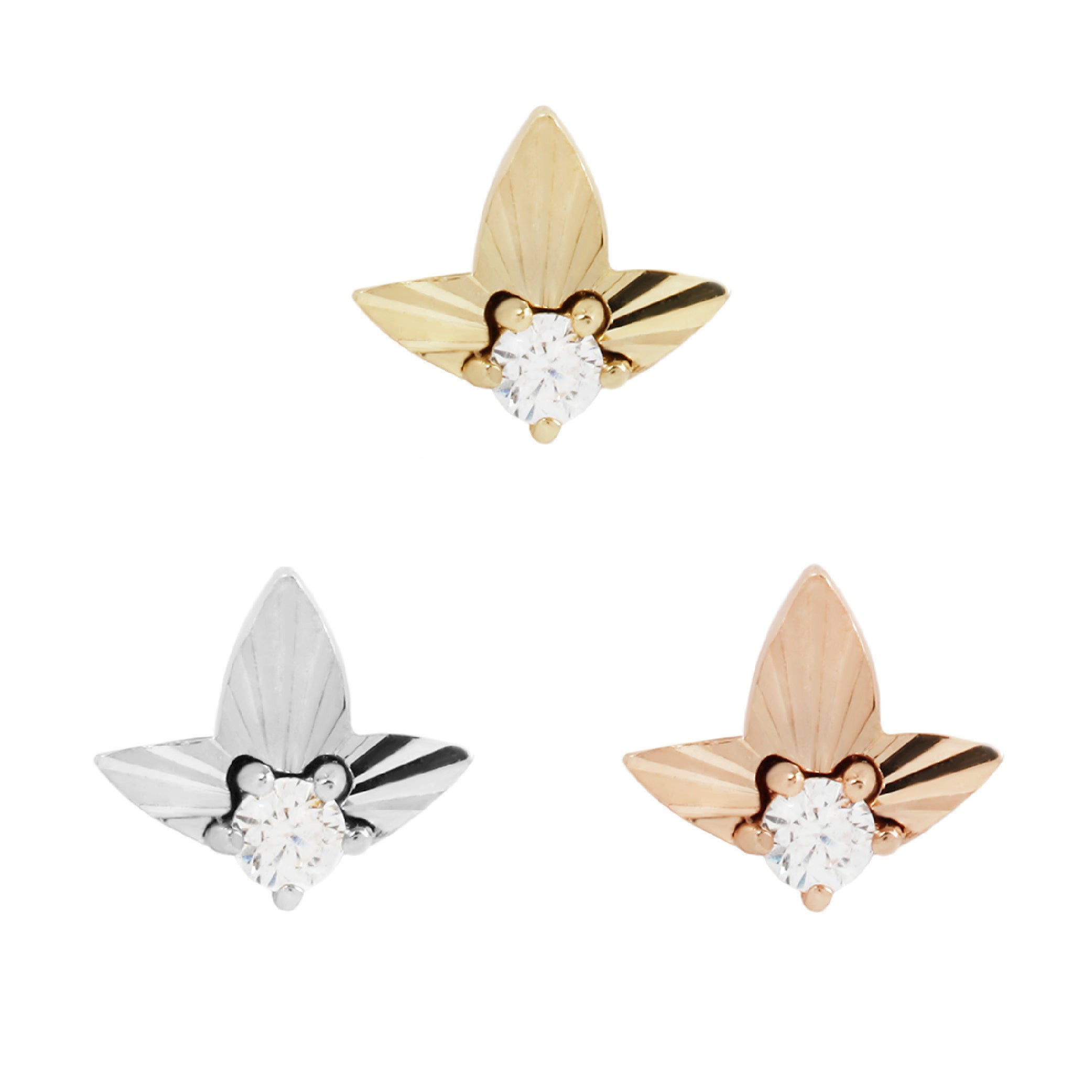 Gratitude is our love language. Beautifully adorned in Solid 14kt Gold, sits a 1.3mm CZ ready to shine bright. Pick this ultra-versatile threadless end for your next piercing date!