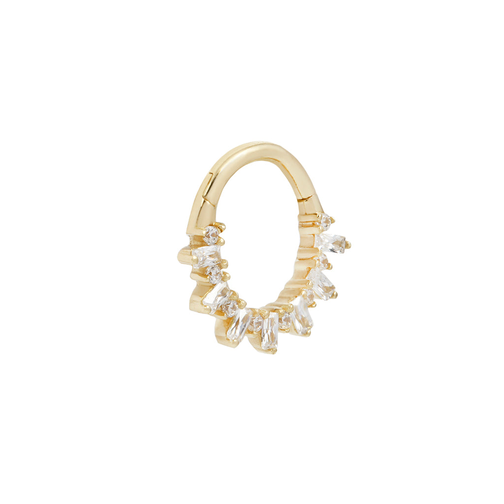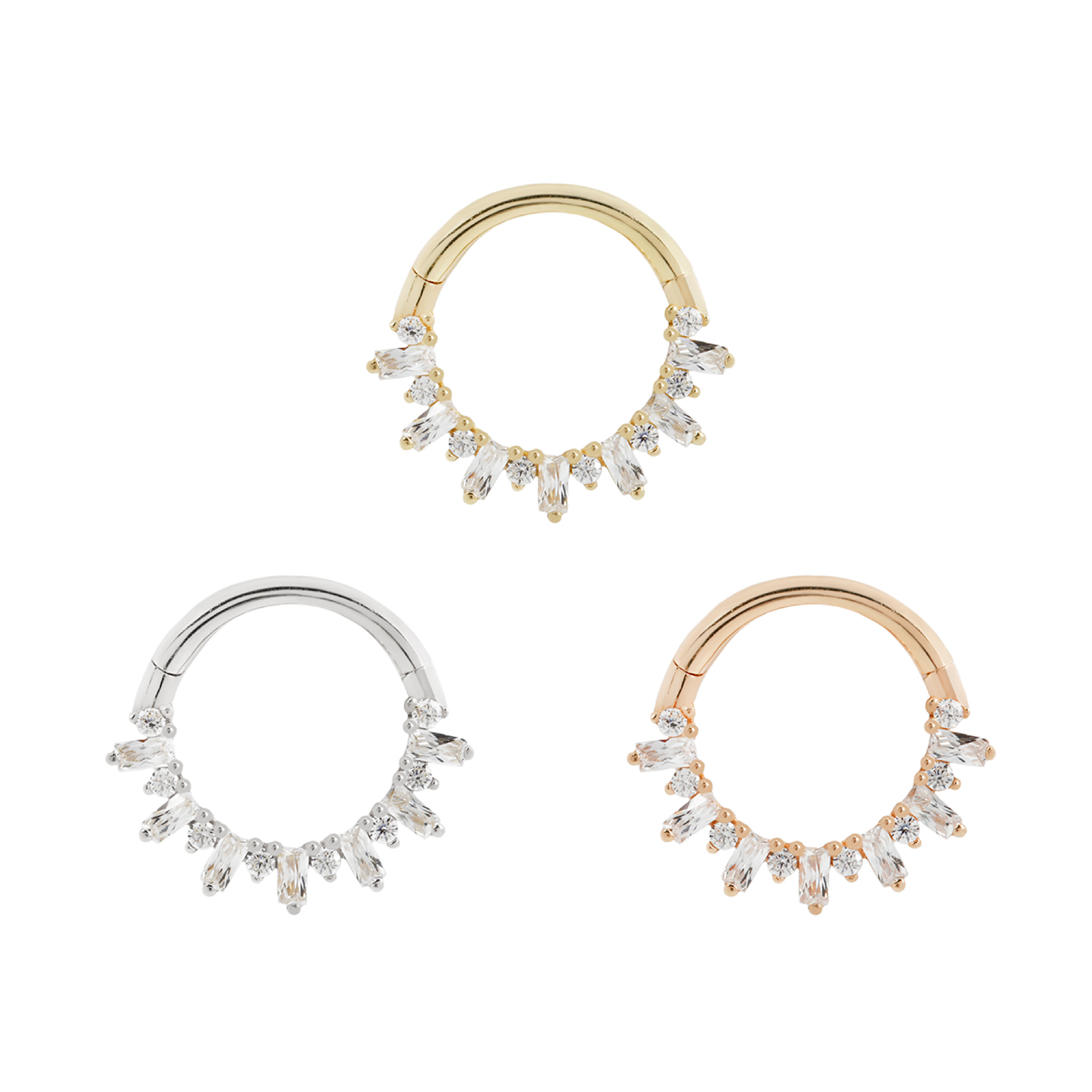 - Gently push the ring together by pushing the hinge section (also the wearing surface that goes through the piercing) inwards until you feel (or hear) a 'click' sound.