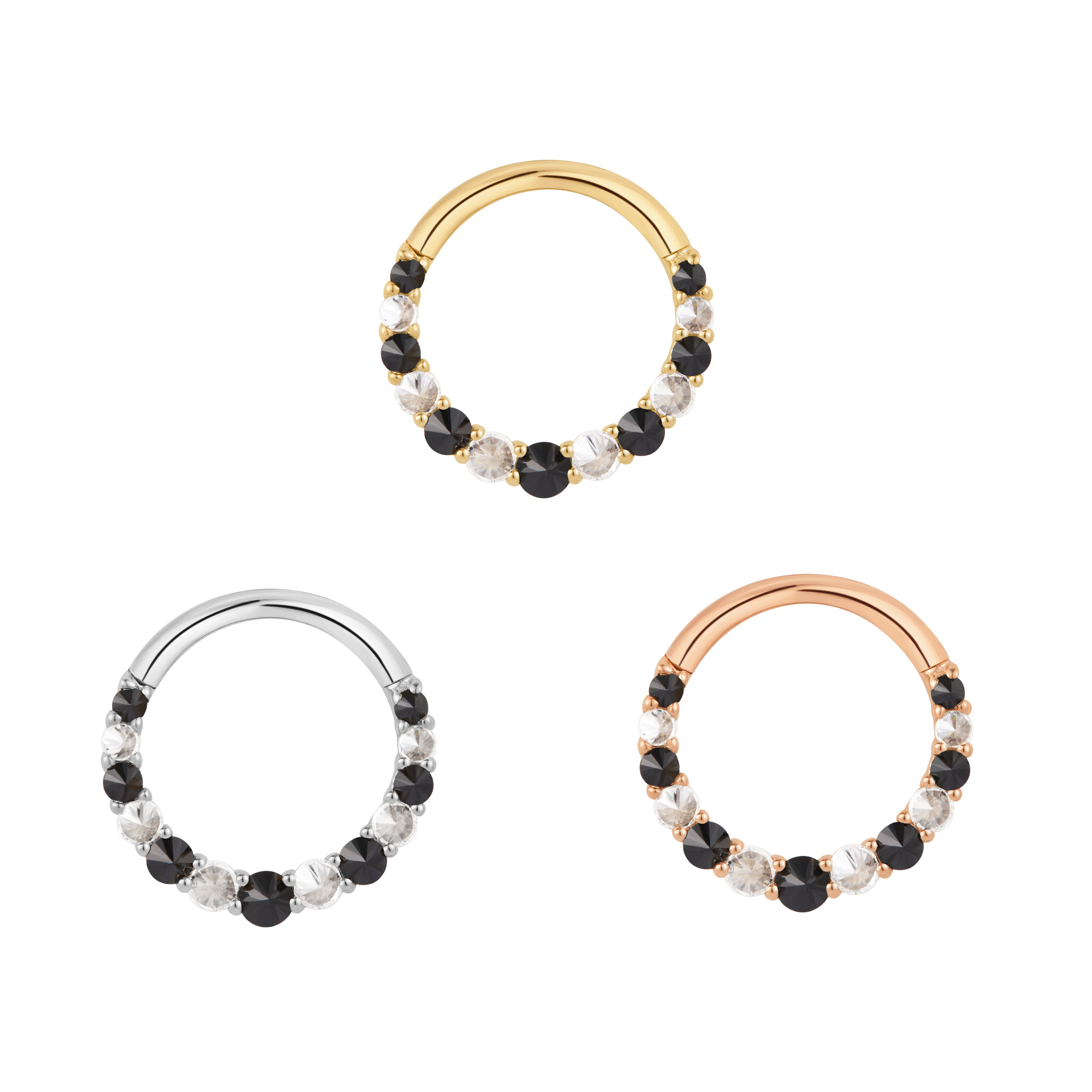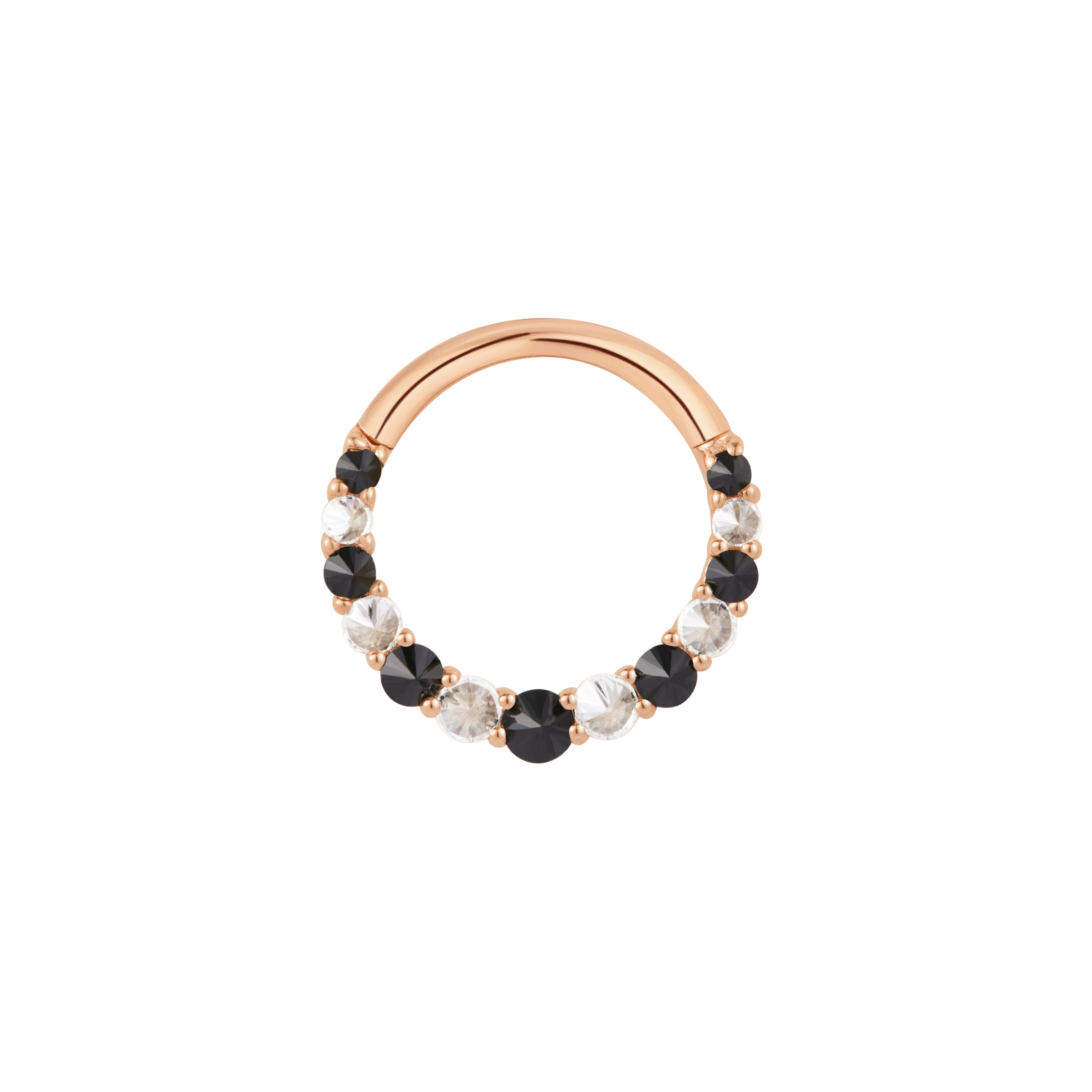 The Eclipse Clicker combines the brilliance of CZ with the boldness of black spinel, creating a stunning contrast that's perfect for any ear stack. This piece captures the allure of an eclipse, offering a touch of celestial elegance. Elevate your look with this eye-catching clicker, designed to shine day or night.