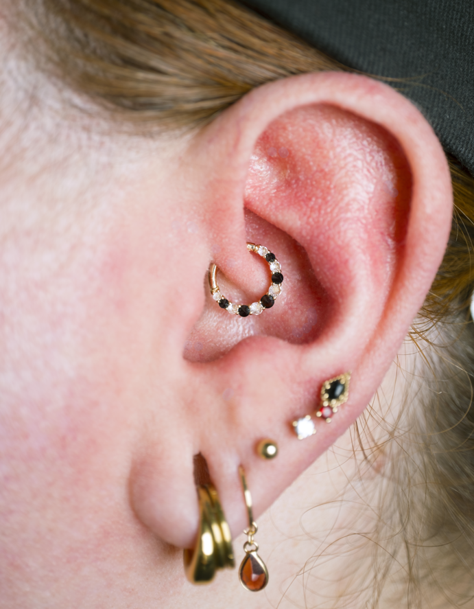 Don’t sleep on new or dainty pieces — it can cause bending or pressure on your piercing and jewelry.