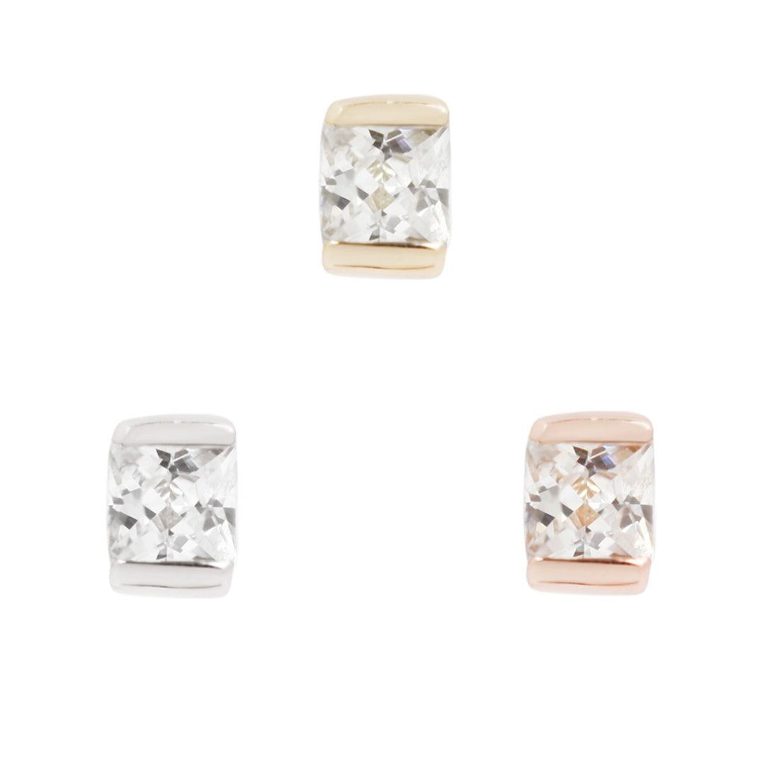 Feel like a boss in & out of the office with this stunning edition! The CEO has a faceted genuine diamond framed with 14kt gold on the top and bottom. This piece compliments and enhances any jewelry you have and look best in the tragus, conch, and rook.