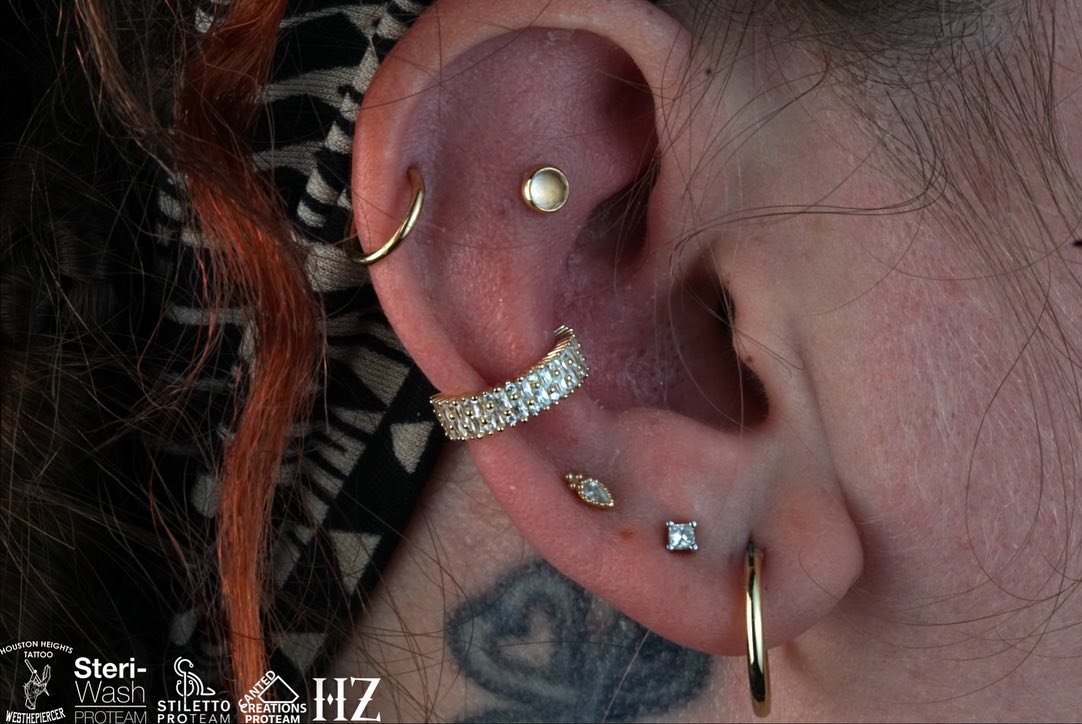 Elevated glamour meets modern style — Brilliant is a showstopper piece ready to sparkle day or night! Shine bright in this style of asymmetrical baguettes and round CZ's. Maximize sparkle by adorning this on the helix or lobe.