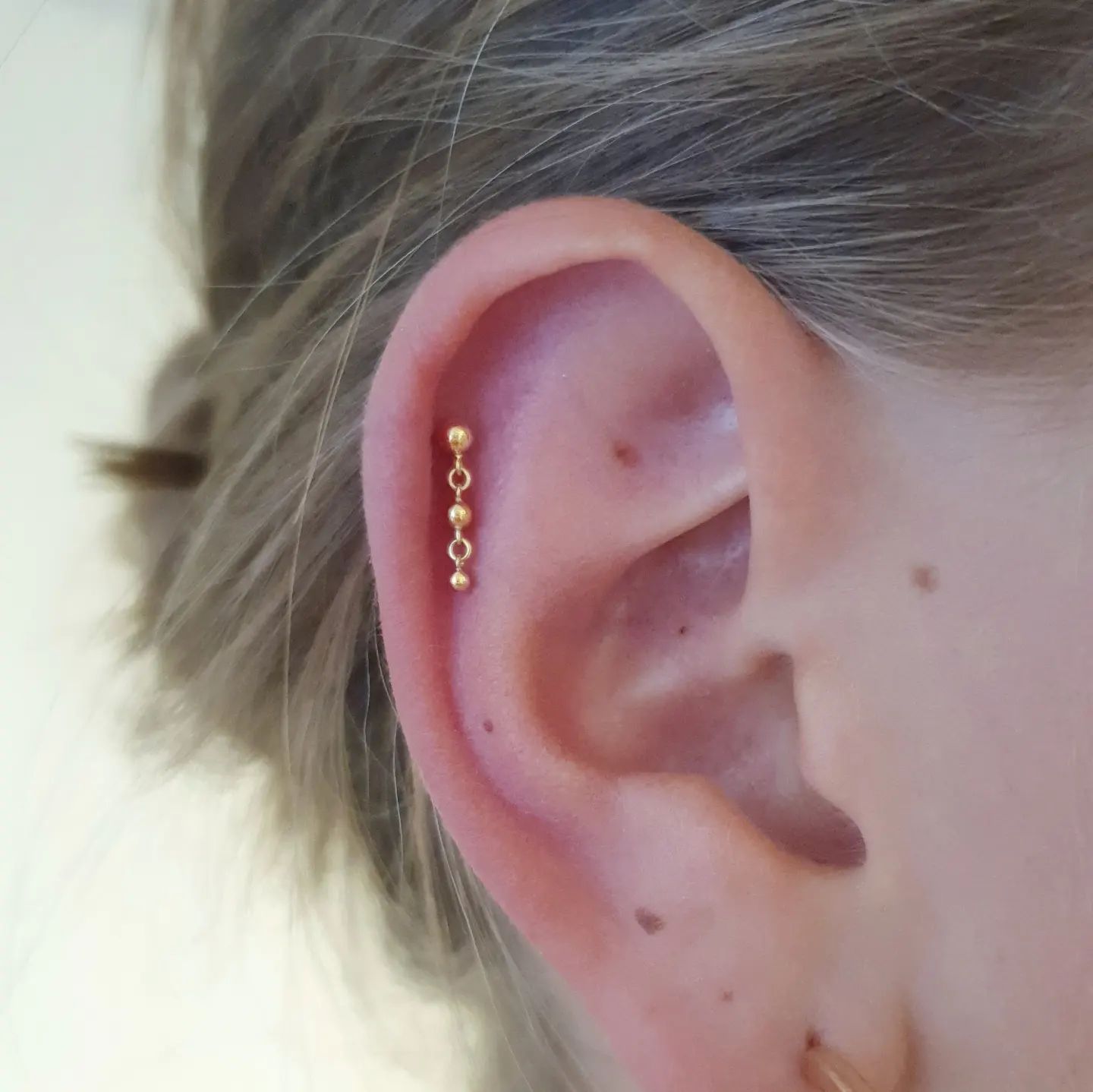 Level up any piercing with the stunning Inanna dangle design.  Adorned with a sleek beaded dangle for extra style.
