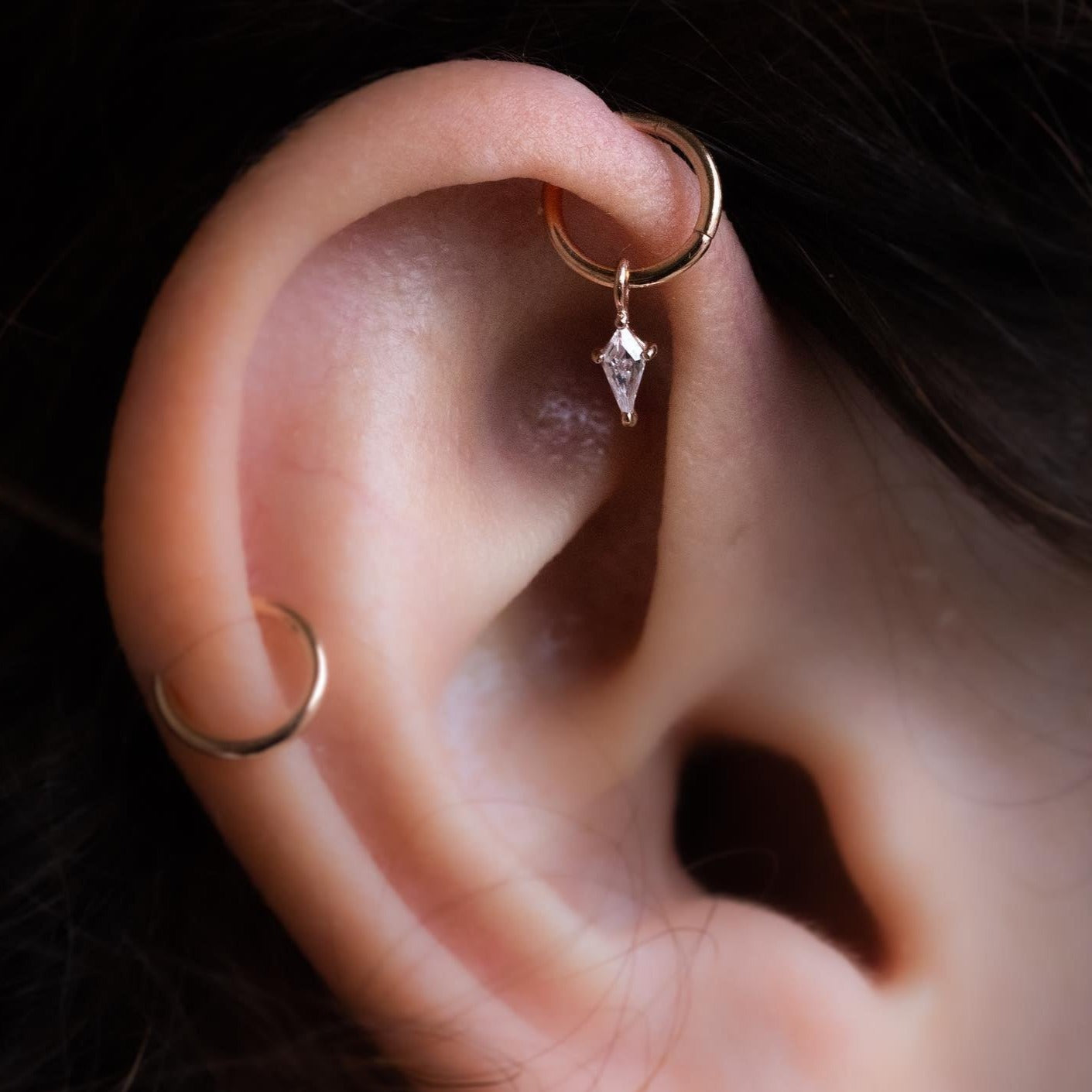 - Gently close the jewelry by either pushing the threadless end and post together or closing the ring.