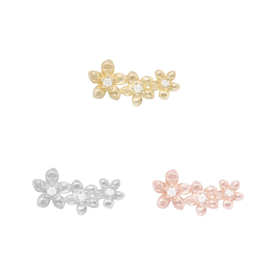 Meet Gaia — a delicate bloom of strength and renewal. This threadless end features three gold flowers, each centered with a sparkling CZ, symbolizing growth and resilience. A portion of sales supports the Lahaina Community Land Trust, helping to rebuild and keep Lahaina lands in Lahaina hands.