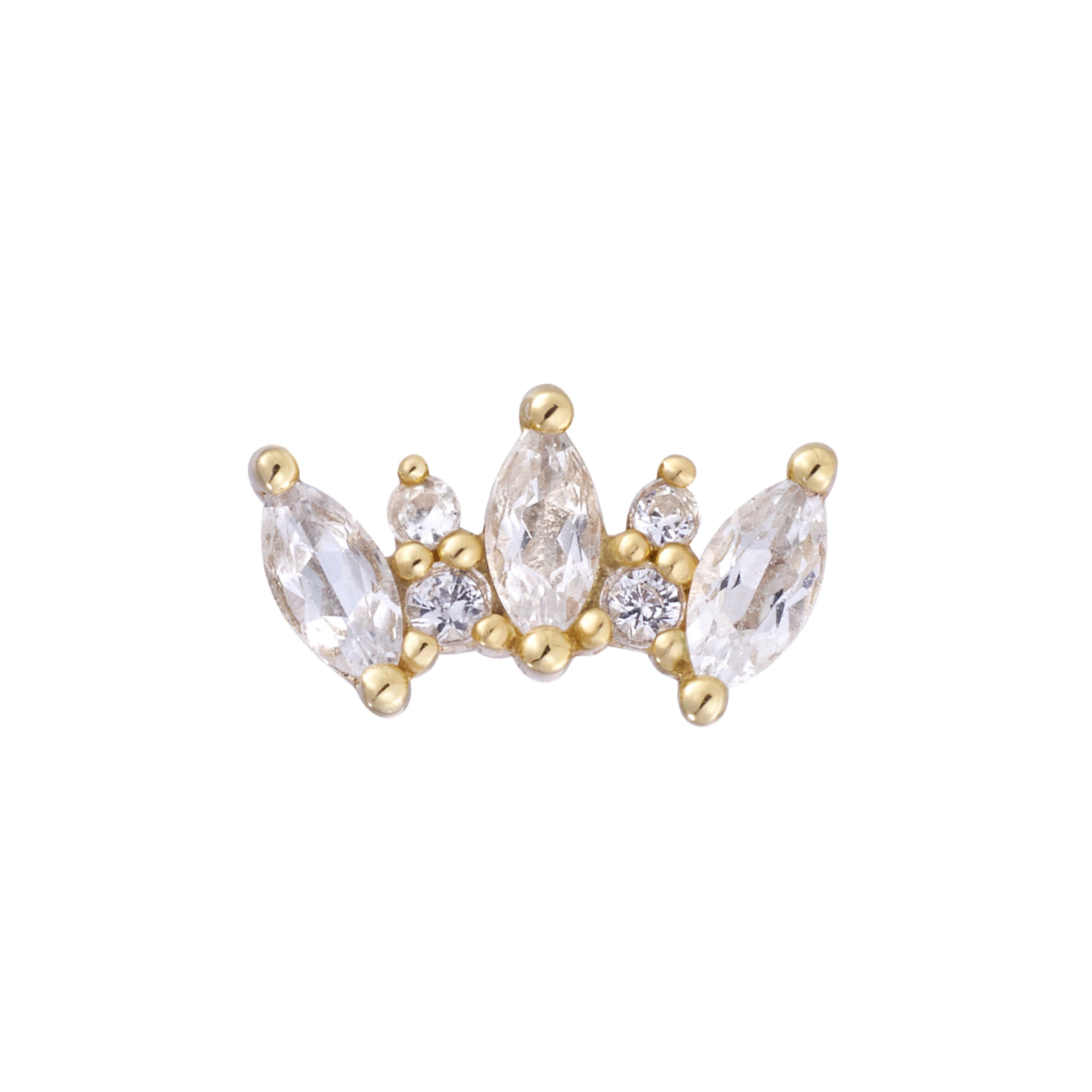 Whimsical and bright with a stunning design of White Sapphires — Alice evokes a sense of chic elegance like never before. Crown your helix with this unique 14kt gold masterpiece.