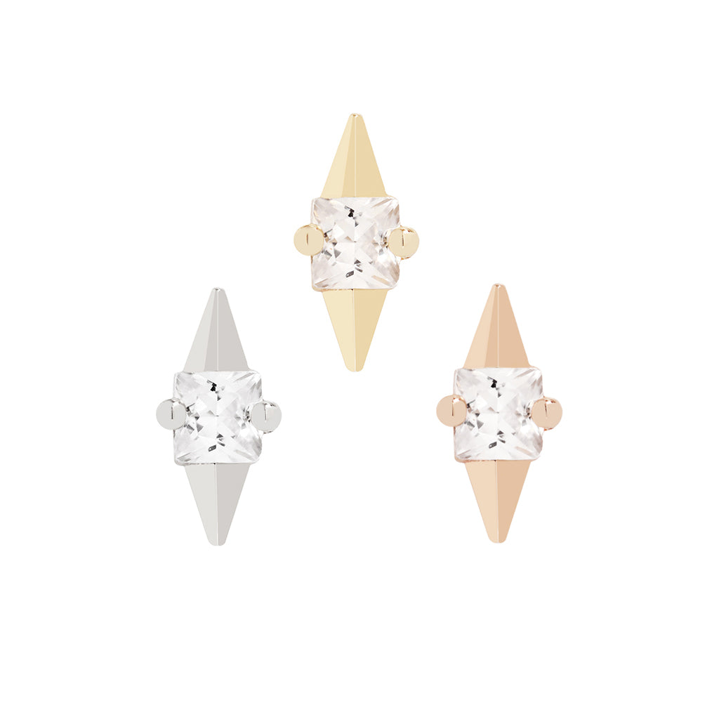 Delicate yet radiant, Elemental is a smaller threadless end that packs a whole lot of sparkle. Featuring a square-cut CZ, this little beauty twinkles with every movement, adding subtle elegance to your piercing. Perfect for nose, lobe, helix, flat, rook, tragus, philtrum, or labret piercings.