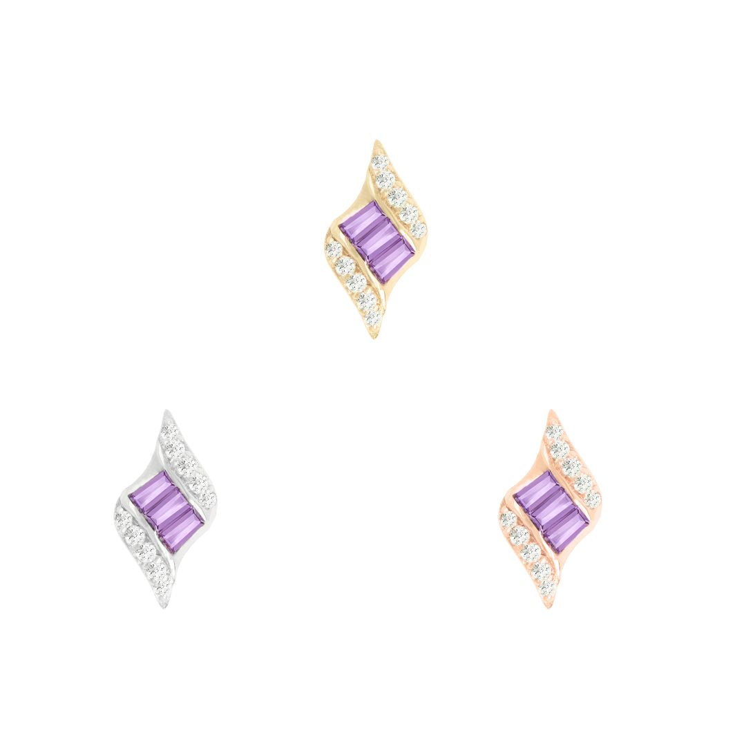 - Gemstone: (3) 1 x 2mm Amethyst baguettes with (6) 0.8mm, (4) 0.7mm round faceted CZs