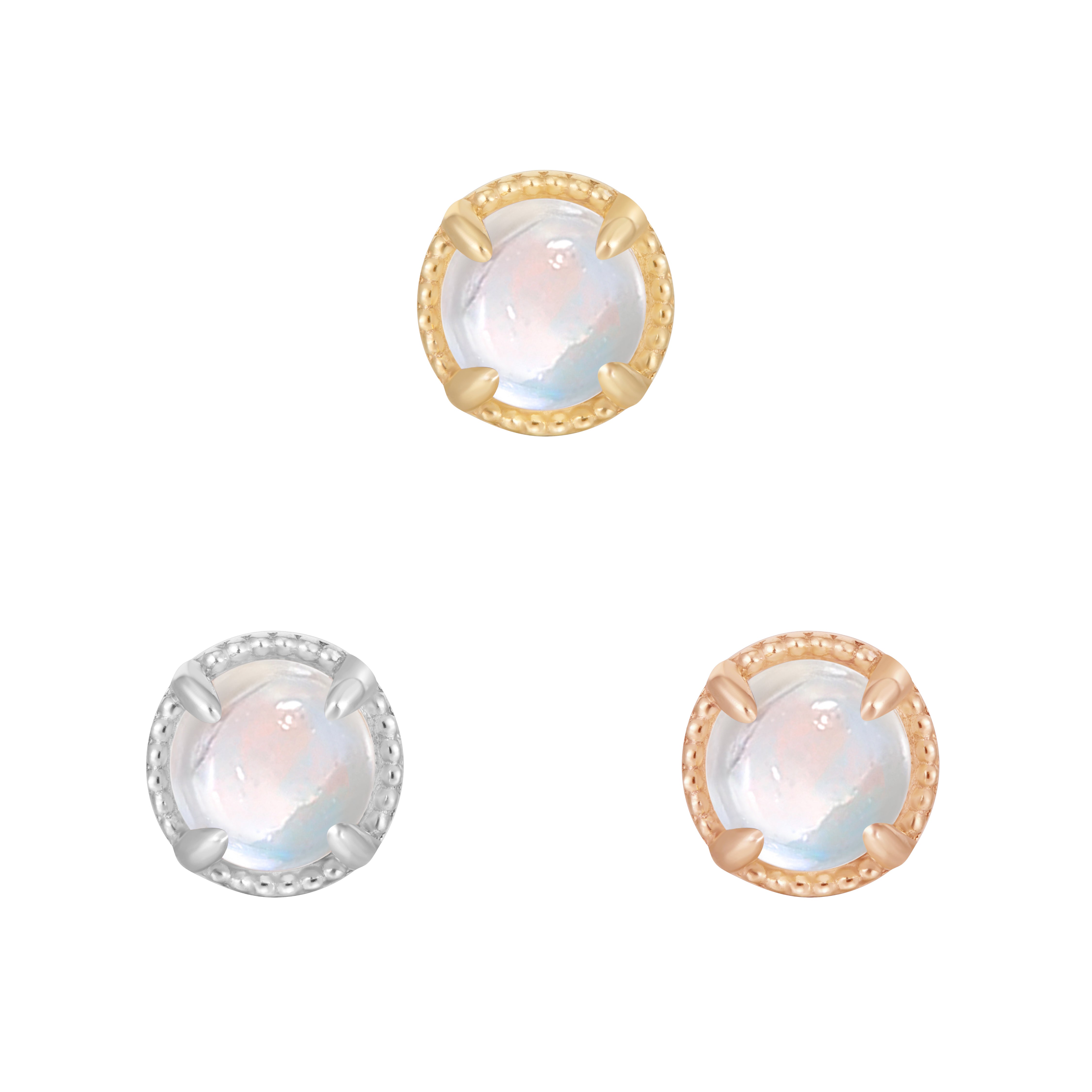 Translucent, vivid moonstone prongs are set in a classic setting. Pair with our Manifest Necklace for a darling set to wear day and night. Style it in your lobes, helix, and nostril piercings.