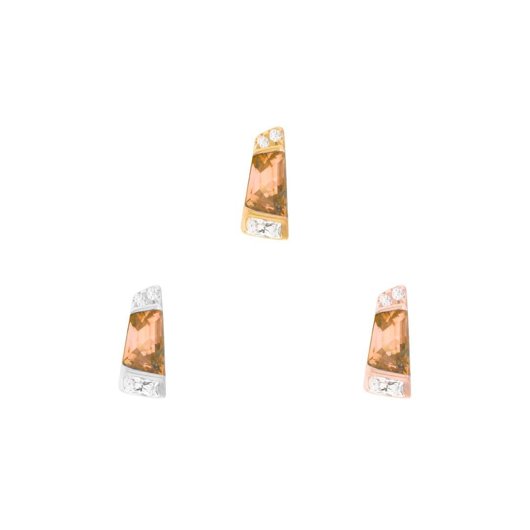 - Gemstone: (1) 3.7 x 2.8mm Orange Garnet tapered baguette, (1) 1 x 2mm CZ baguette, (2) 0.7mm round faceted CZs