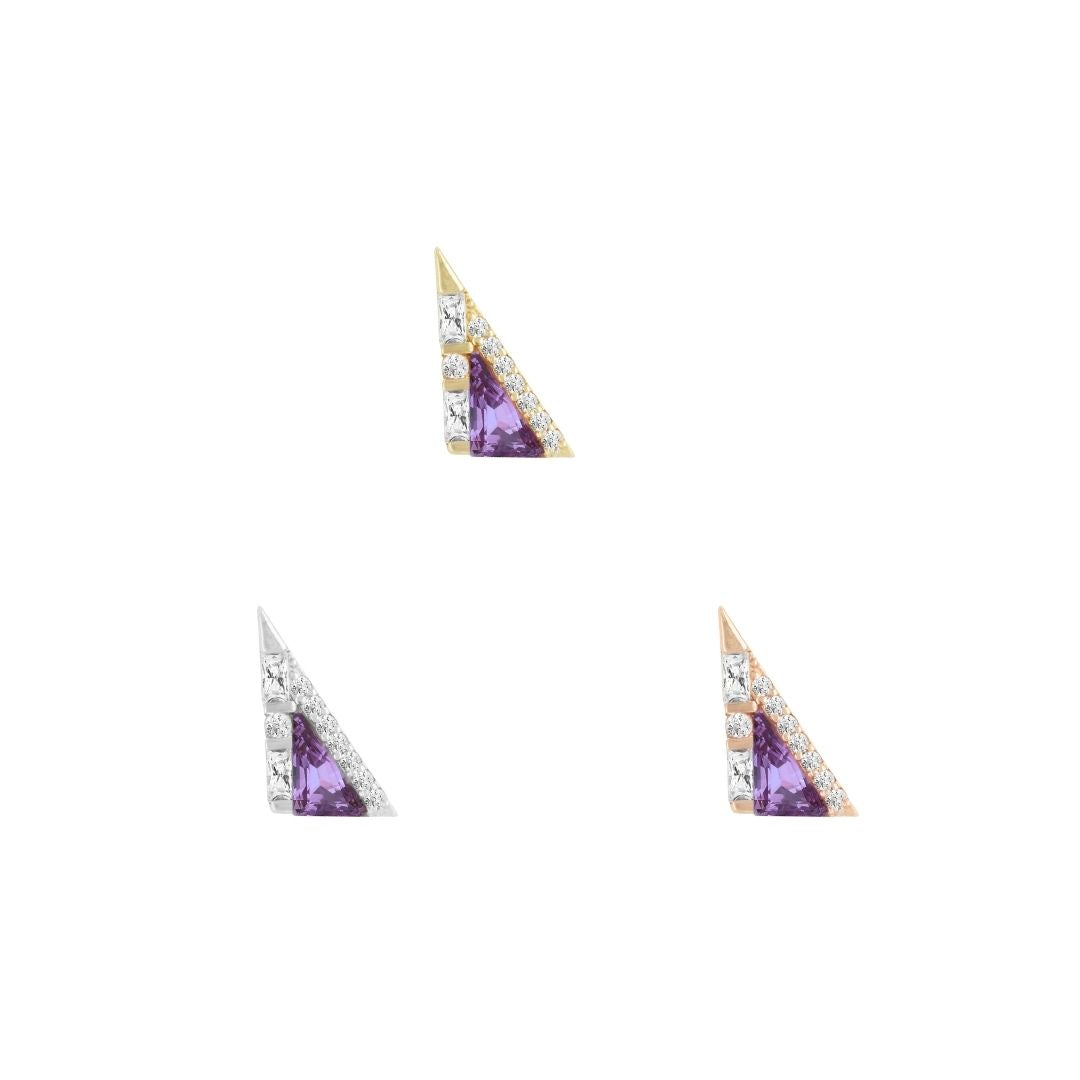 Transmission in Amethyst is all about sharp lines and striking symmetry. This geometric threadless end features a clean triangular cut, showcasing the rich purple hue with modern edge. A standout piece for clients who love structure, color, and a little cosmic energy.