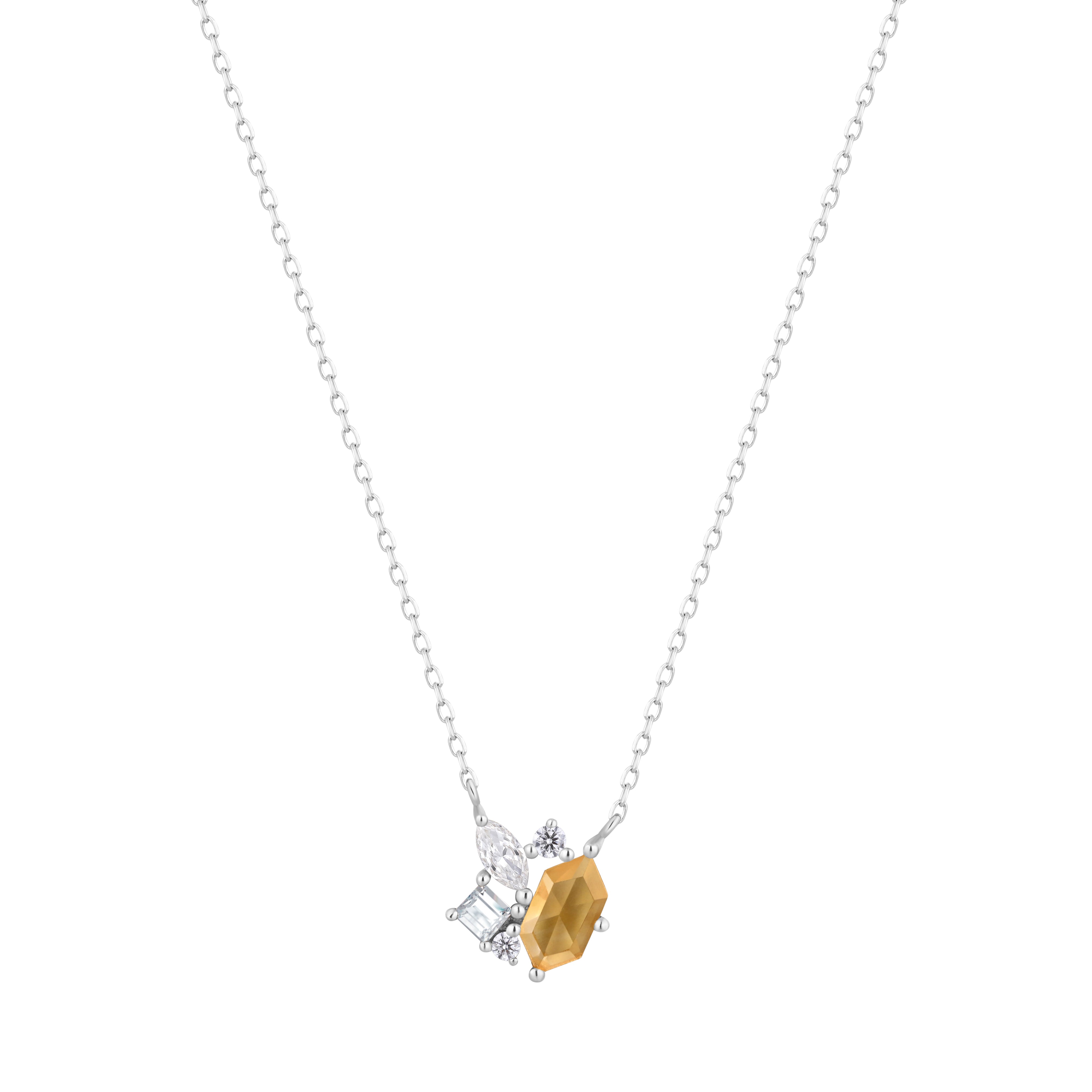 A cheerful rutilated quartz sits combined with white sapphires in this elusive new design.