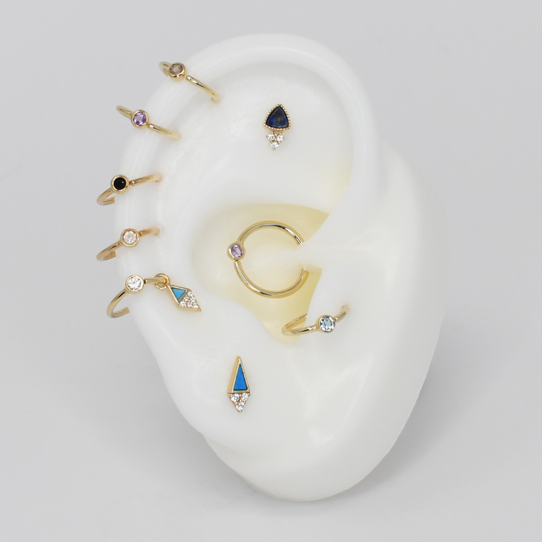 Don’t sleep on new or dainty pieces — it can cause bending or pressure on your piercing and jewelry.