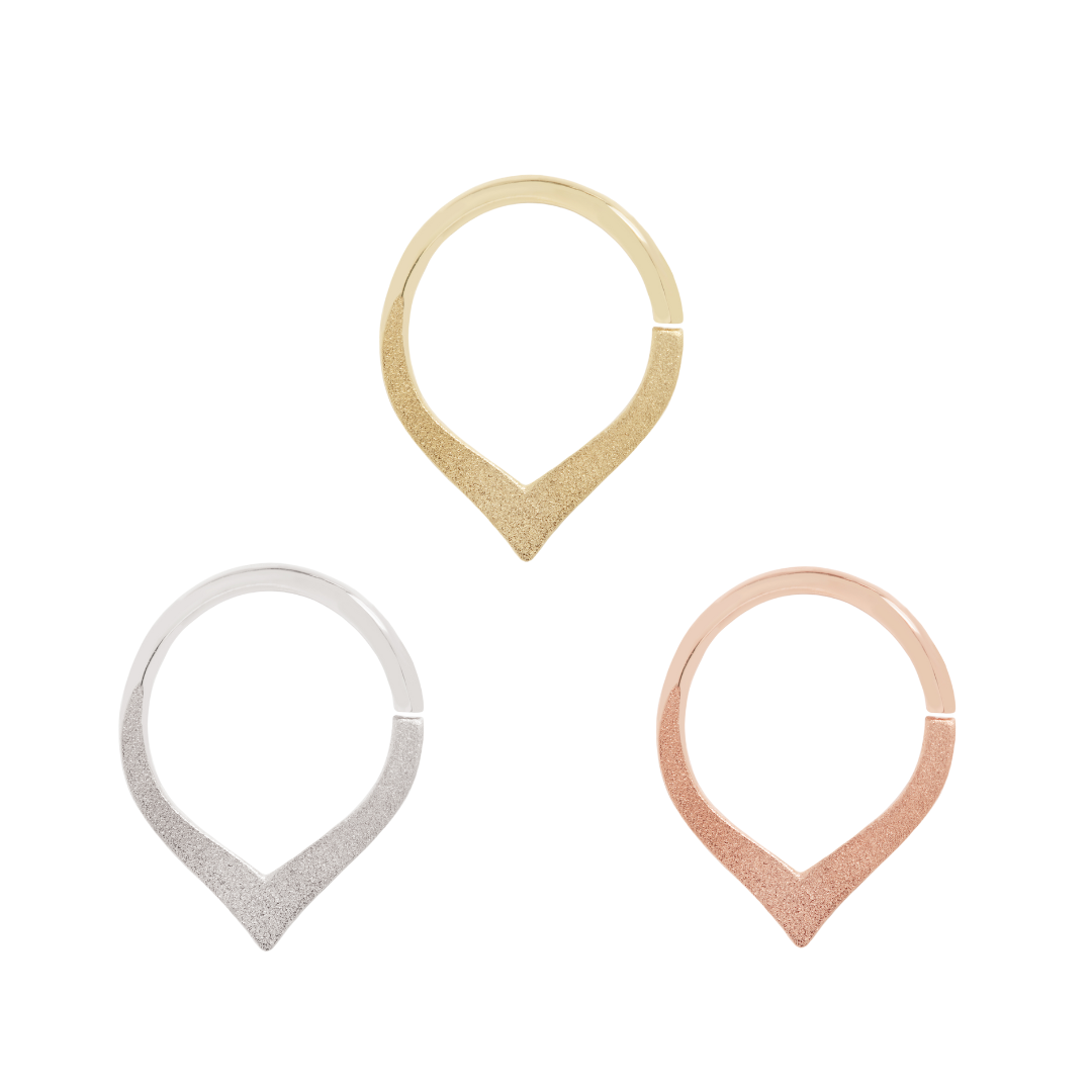 Discover versatility with the "Rise Sandblast" reversible seam ring, featuring a sleek finish on one side and a textured sandblasted side on the other, allowing you to switch up your look effortlessly. Perfect for daith, septum, helix, and lobe piercings, this reversible design lets you express your mood or outfit with ease.