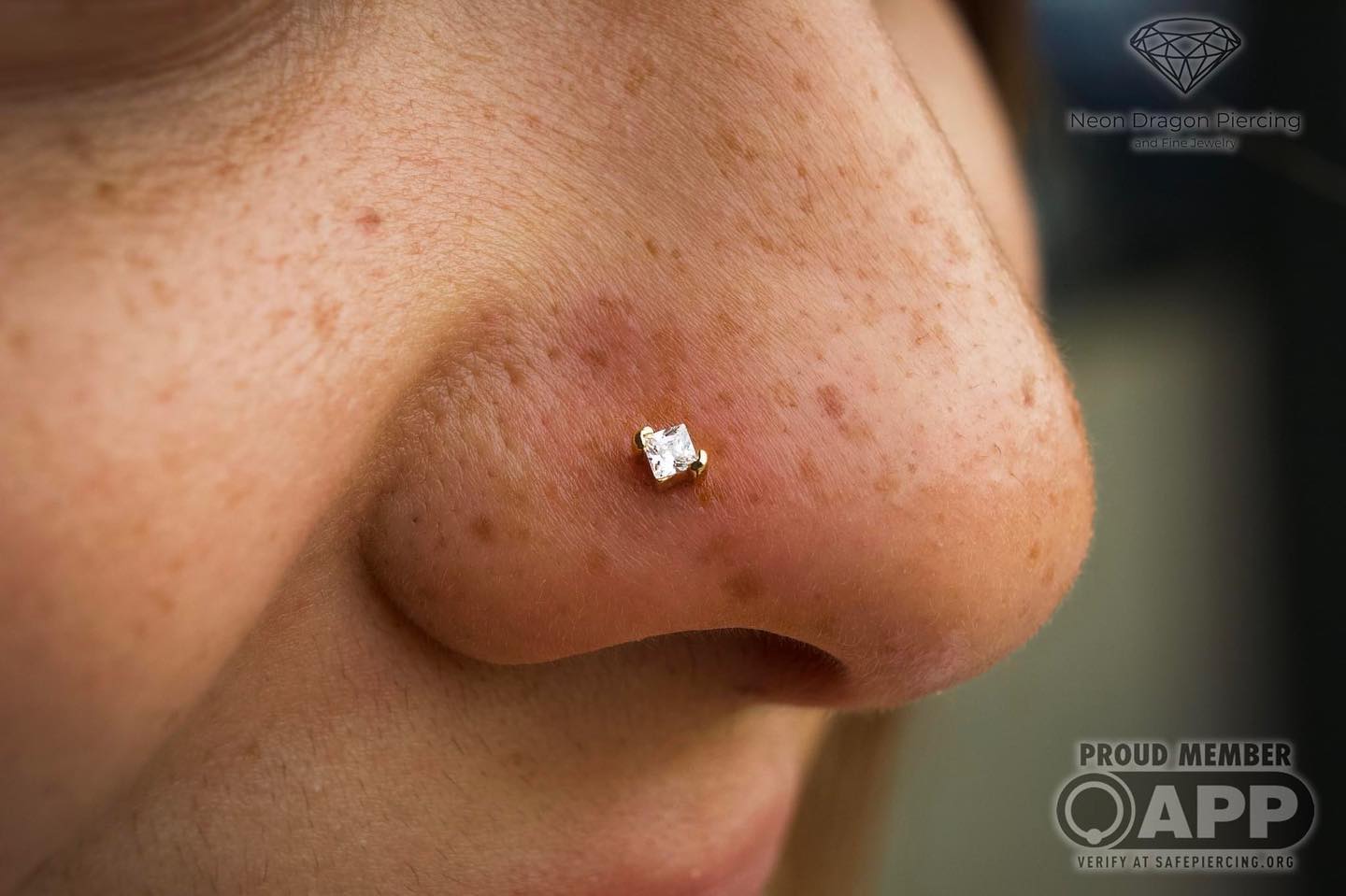 Avoid contact with hair products, perfumes, and makeup around piercings — these can build up and dull the finish.