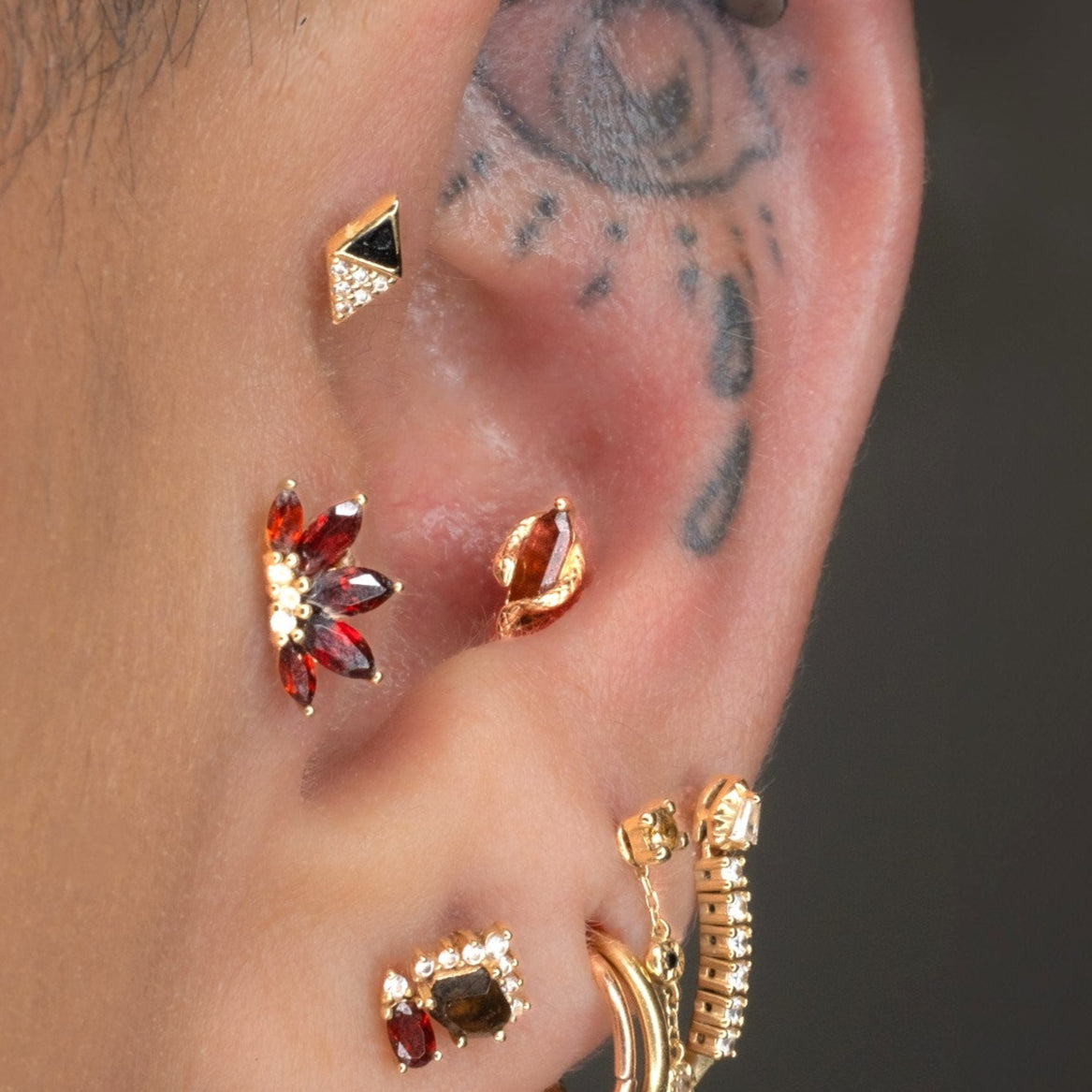 Introducing 'Eve Was Framed' – a bold new design featuring a captivating serpent delicately wrapped around the mesmerizing garnet centerpiece, set in solid 14k gold. This striking piece is tailor-made for lobe, tragus, helix, nose, and lip piercings, promising to make a statement with its unique and alluring design.