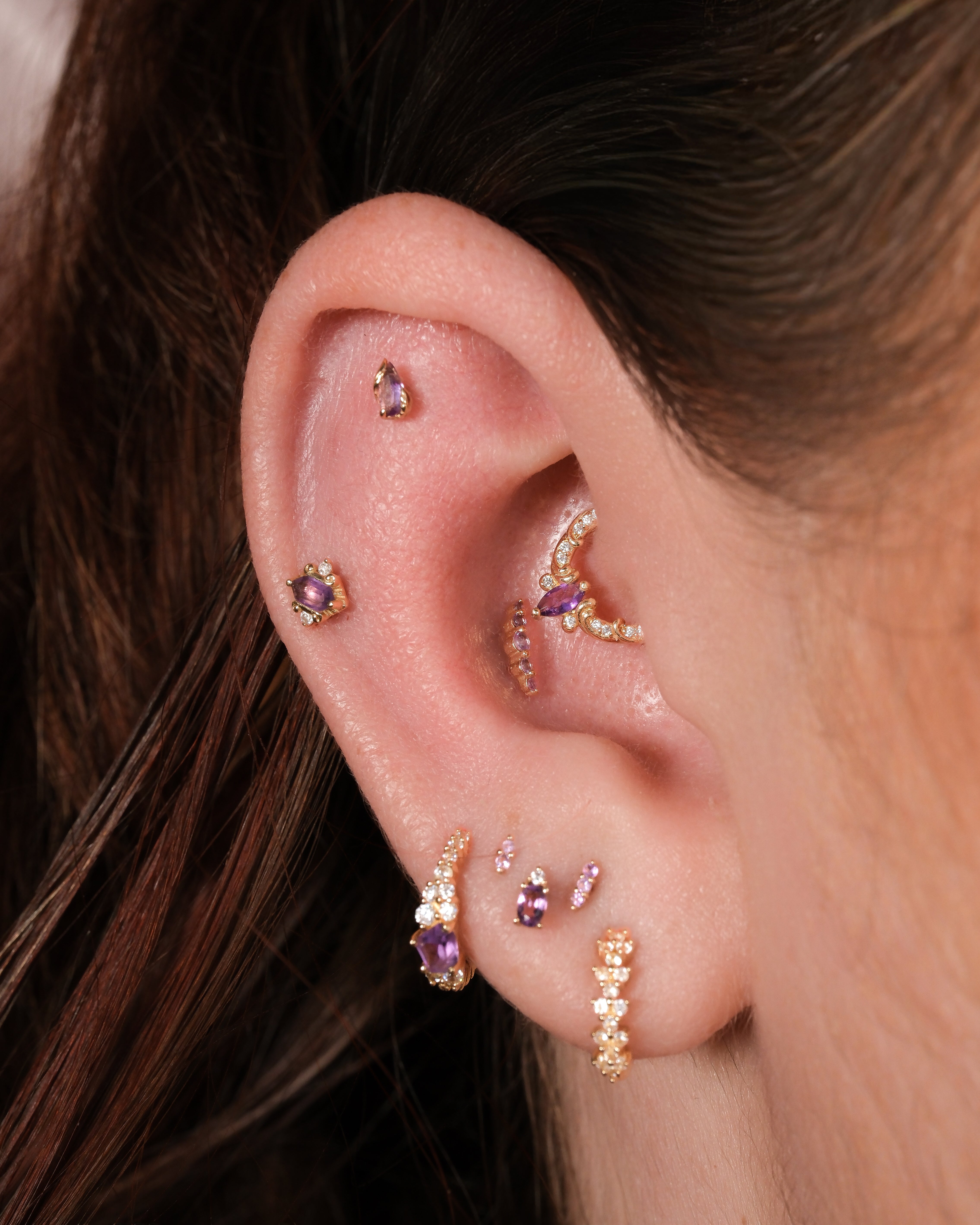 Don’t sleep on new or dainty pieces — it can cause bending or pressure on your piercing and jewelry.