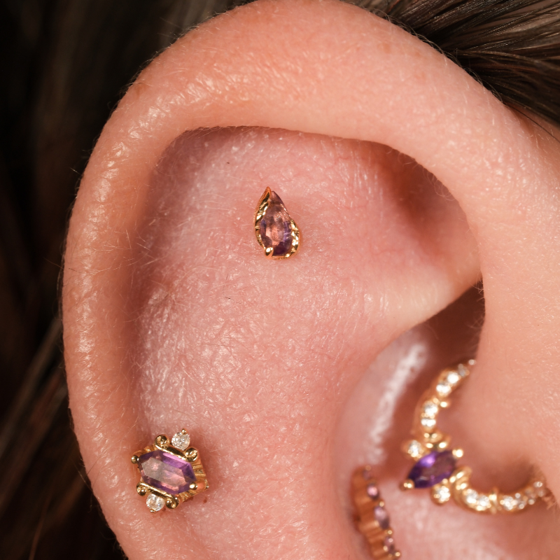 Gemstone: (1) 2mm x 4mm pear-cut Amethyst