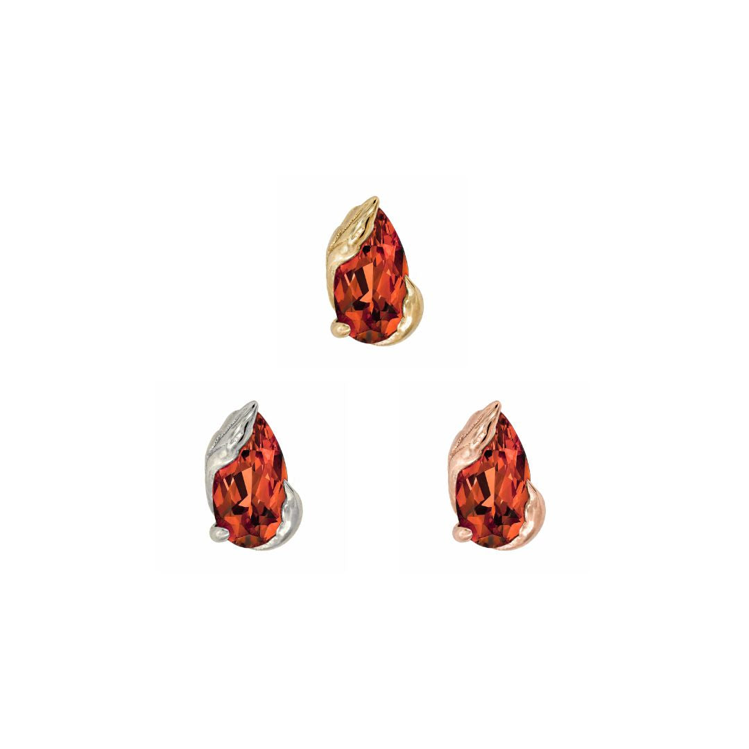 - Gemstone: (1) 2mm x 4mm pear-cut Garnet