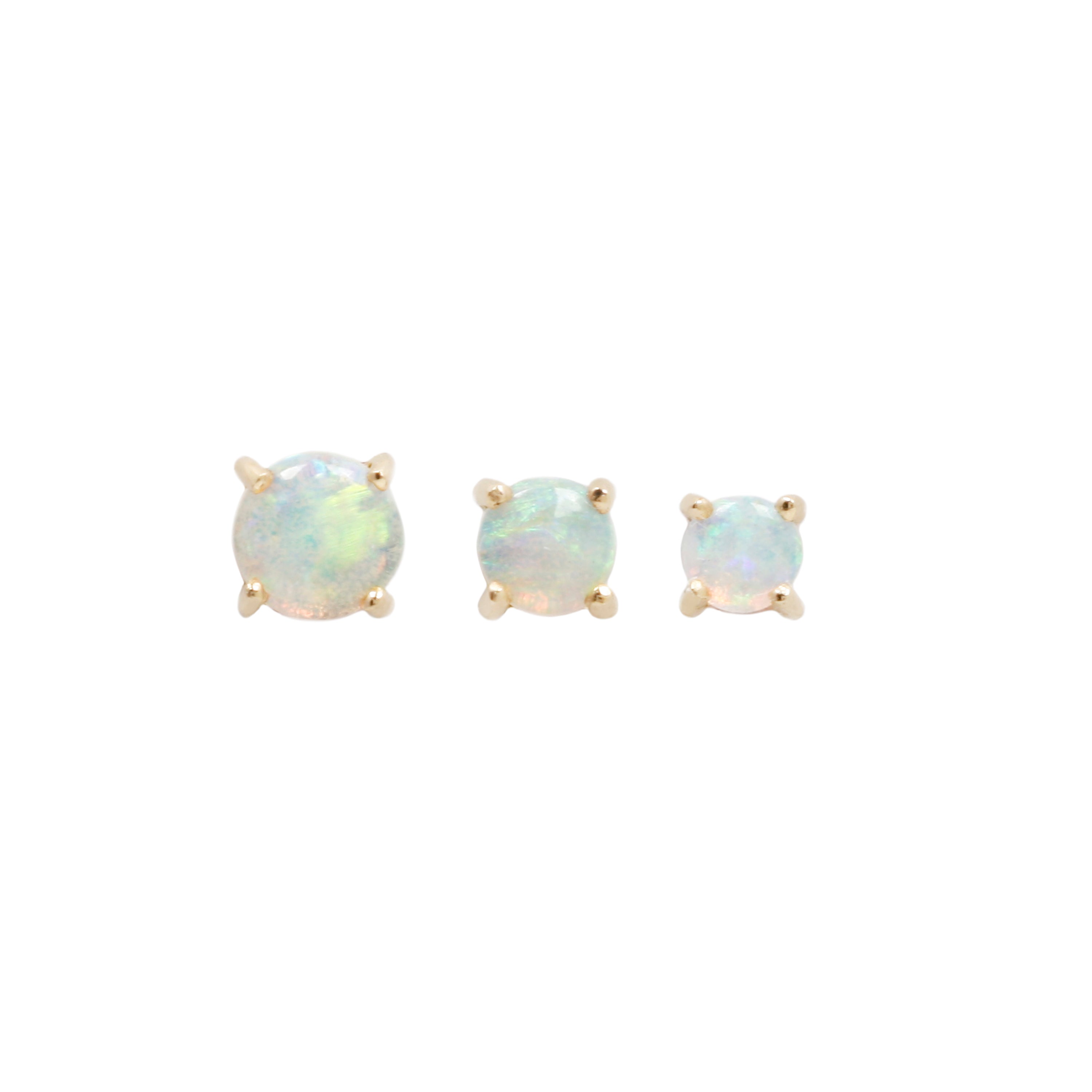 Everyday luxury at an affordable price. Held by four gold prongs, our genuine opal cabochons are specially chosen to be the perfect cut and quality to illuminate your jewelry to another level.