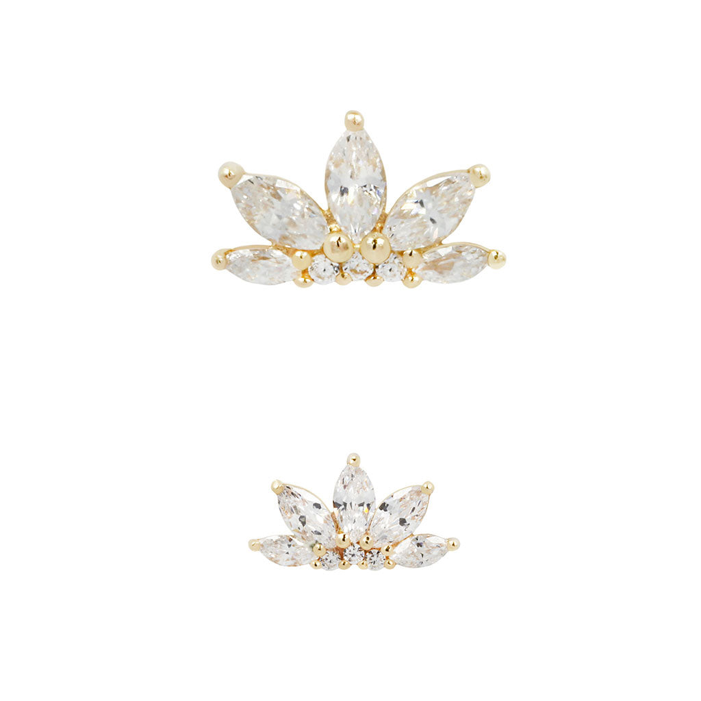 - Mini overall size: 4.4mm x 7.4mm with (3) 3 x 1.5mm and (2) 1 x 2mm marquise-cut CZs, as well as (3) 0.8mm round faceted CZs