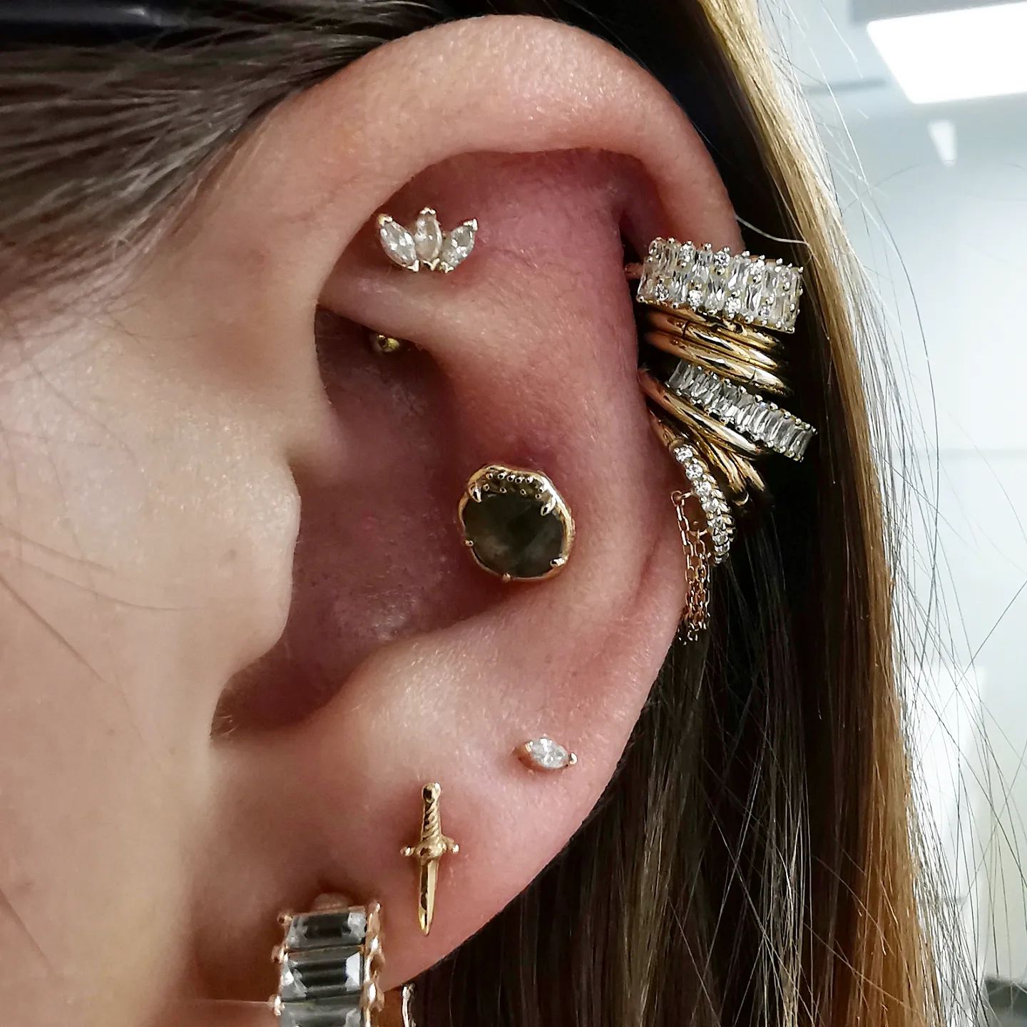 Don’t sleep on new or dainty pieces — it can cause bending or pressure on your piercing and jewelry.